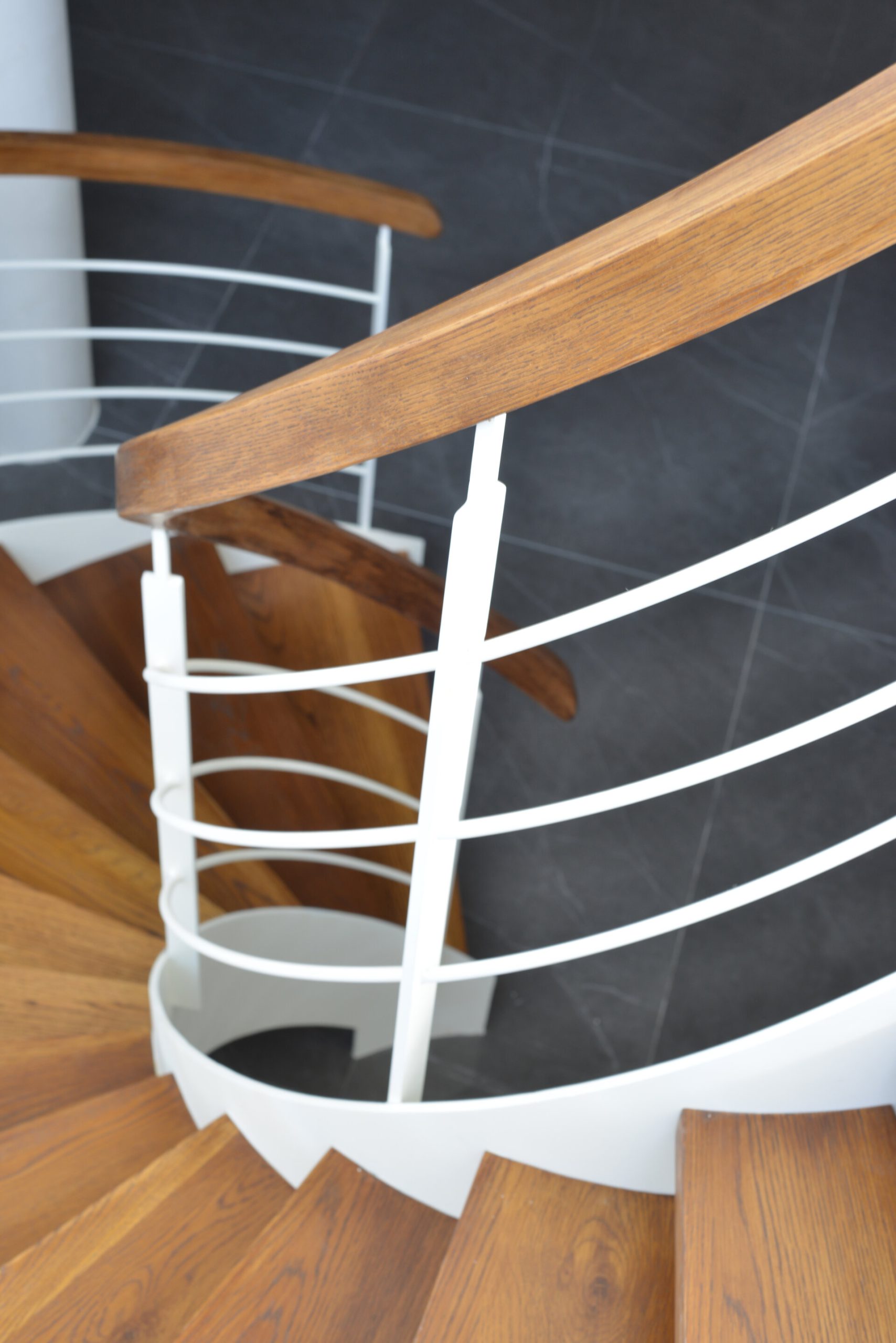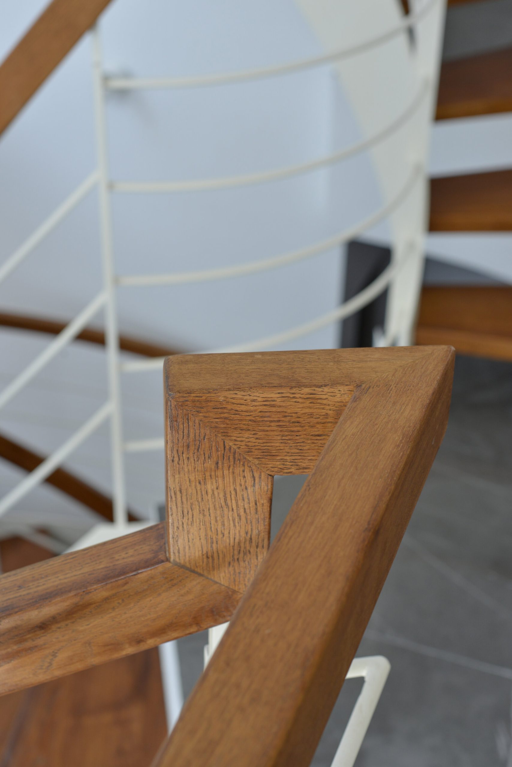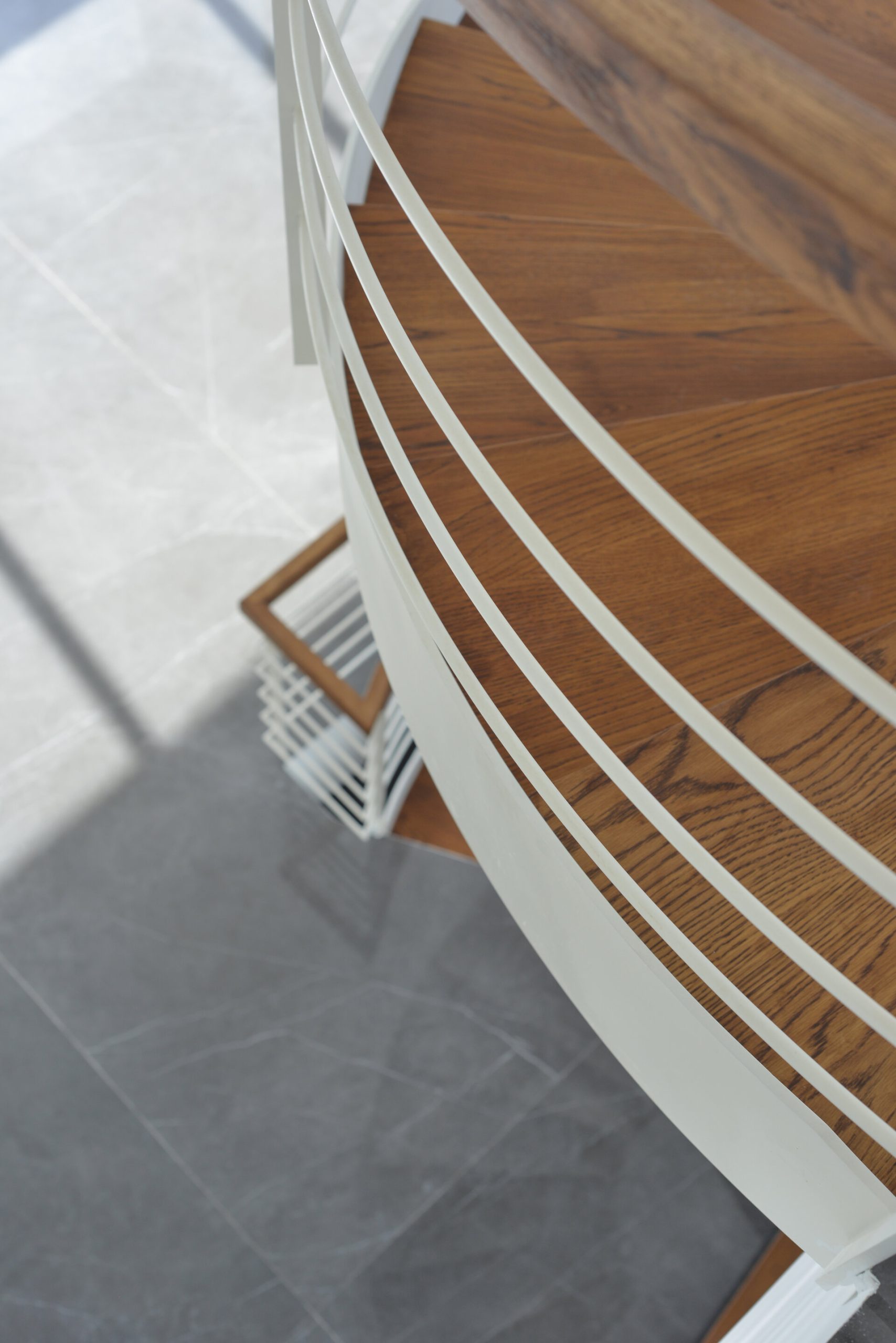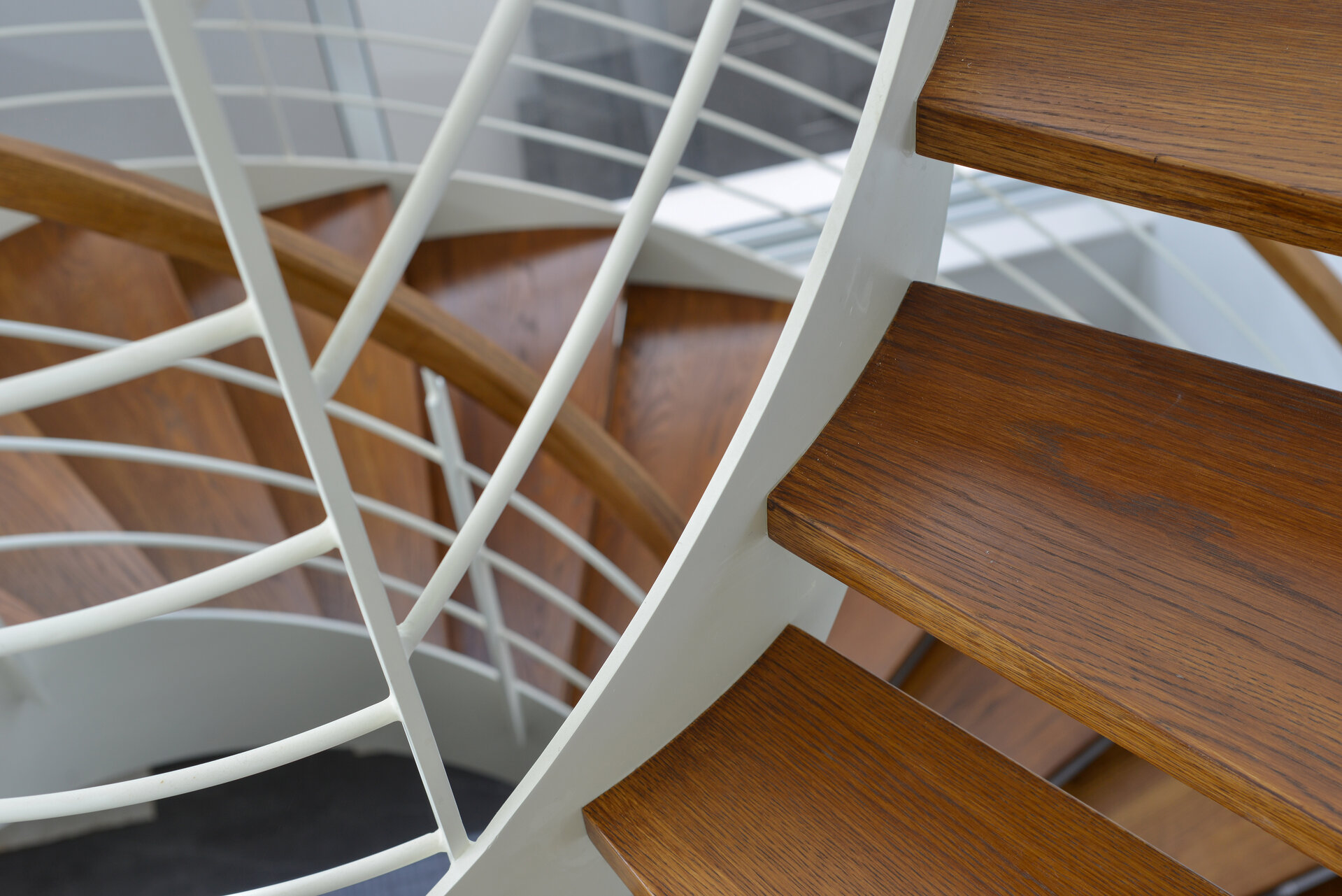 פרויקט מדרגות בהרצליה פיתוח - יגאל יקיר: מדרגות בקונסטרוקציה ספירלה מברזל ועץ אלון אמריקאי ספירלה