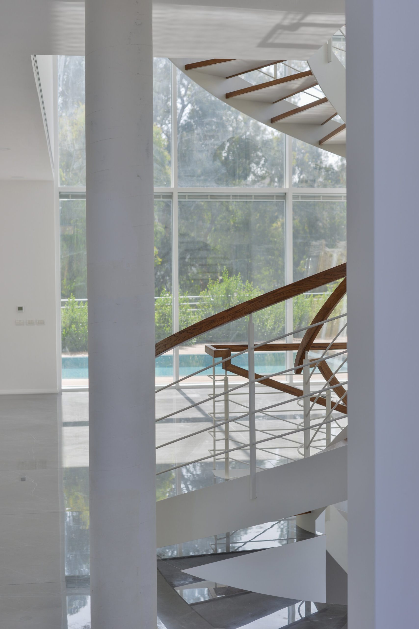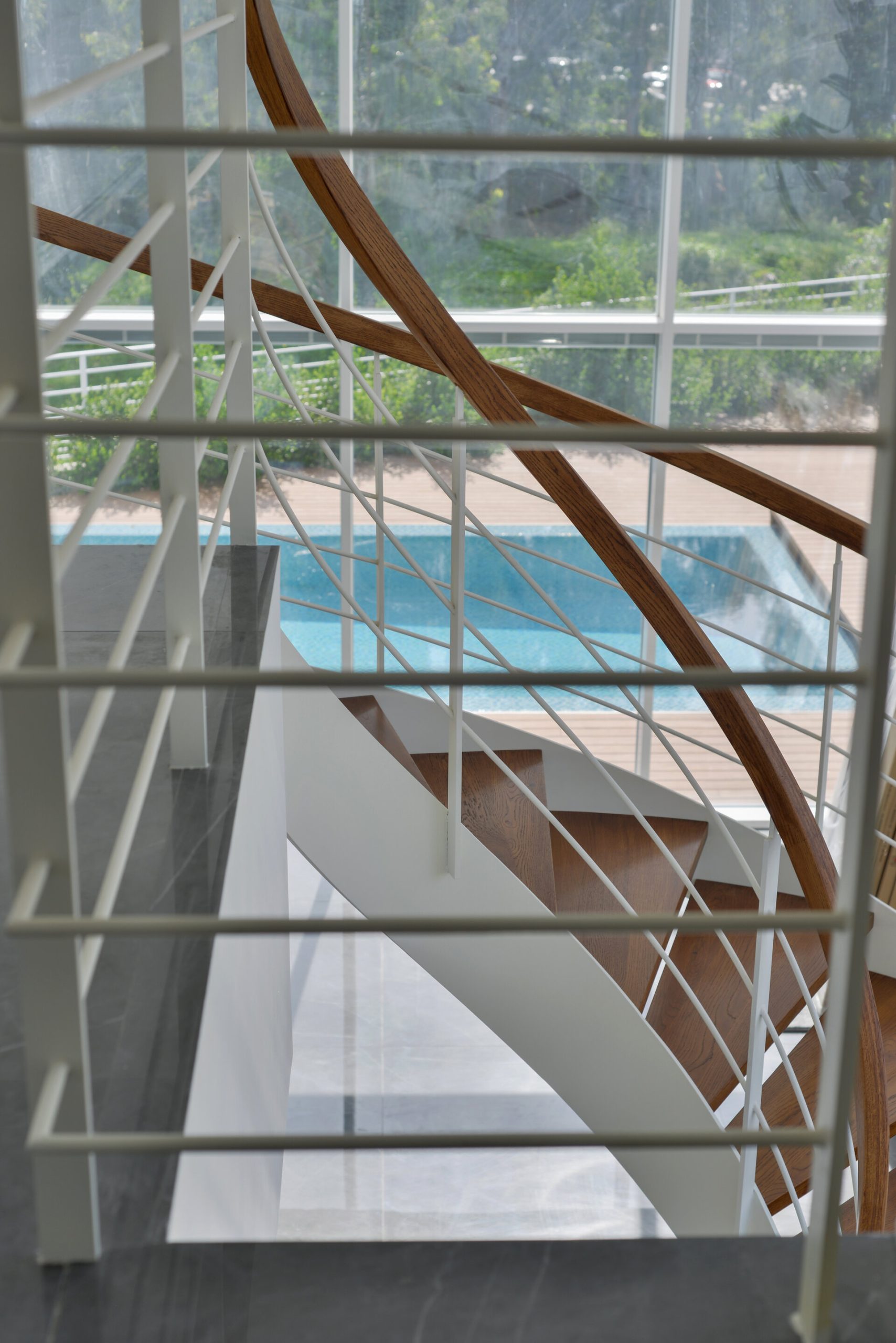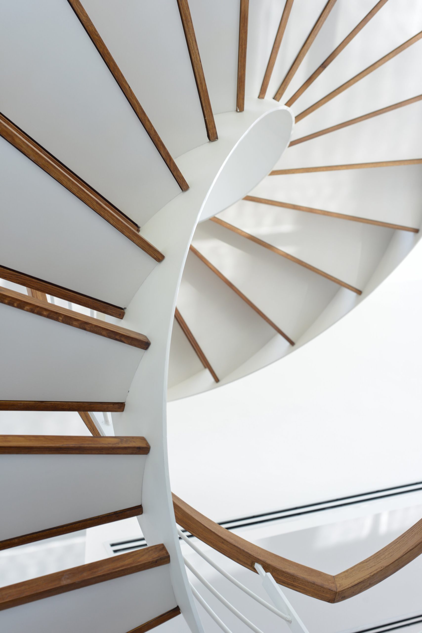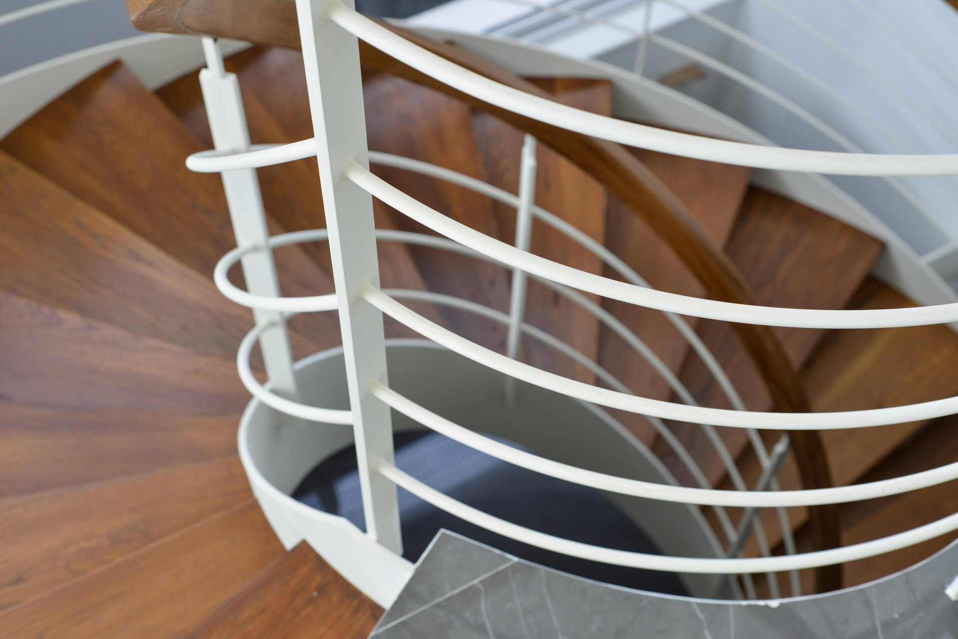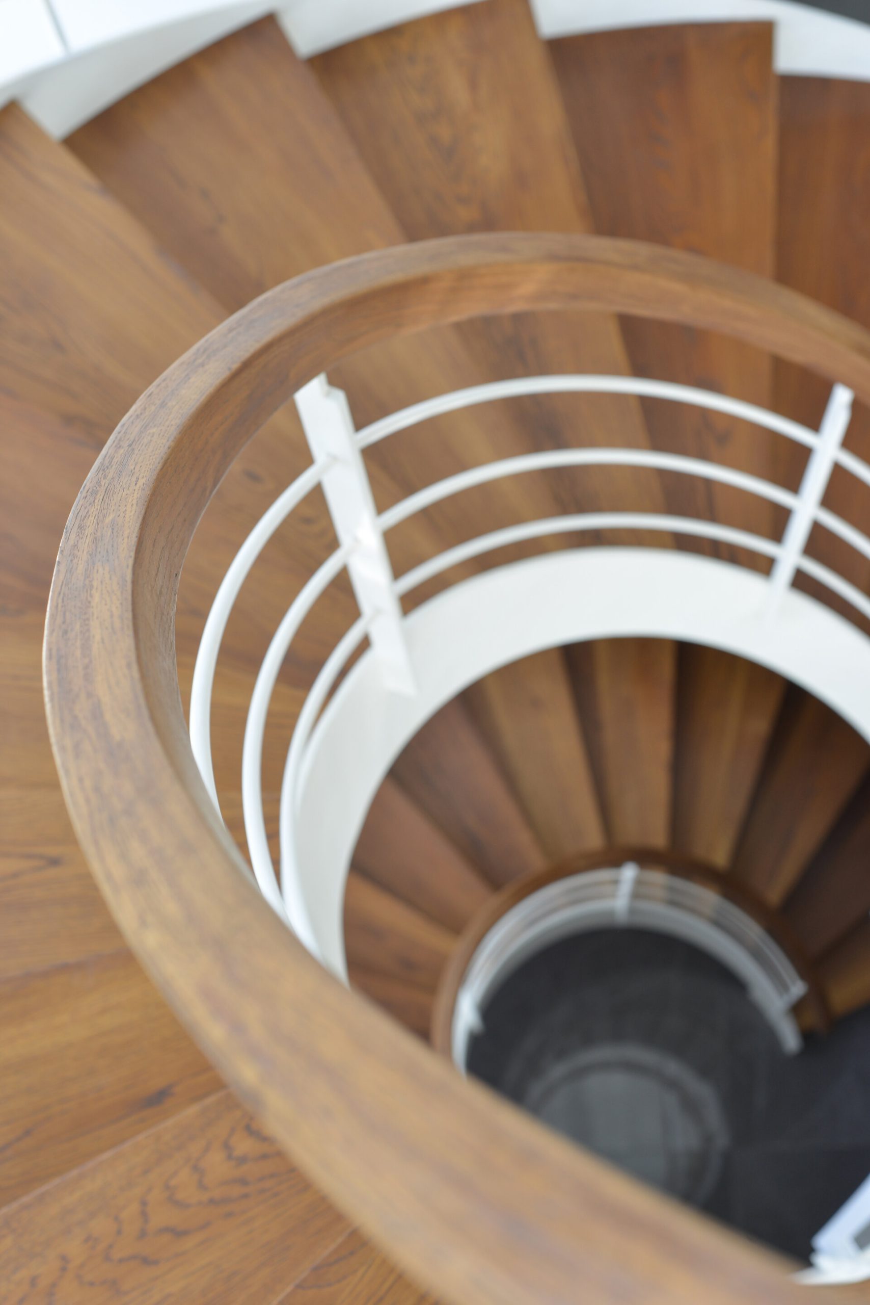 פרויקט מדרגות בהרצליה פיתוח - יגאל יקיר: מדרגות בקונסטרוקציה ספירלה מברזל ועץ אלון אמריקאי ספירלה