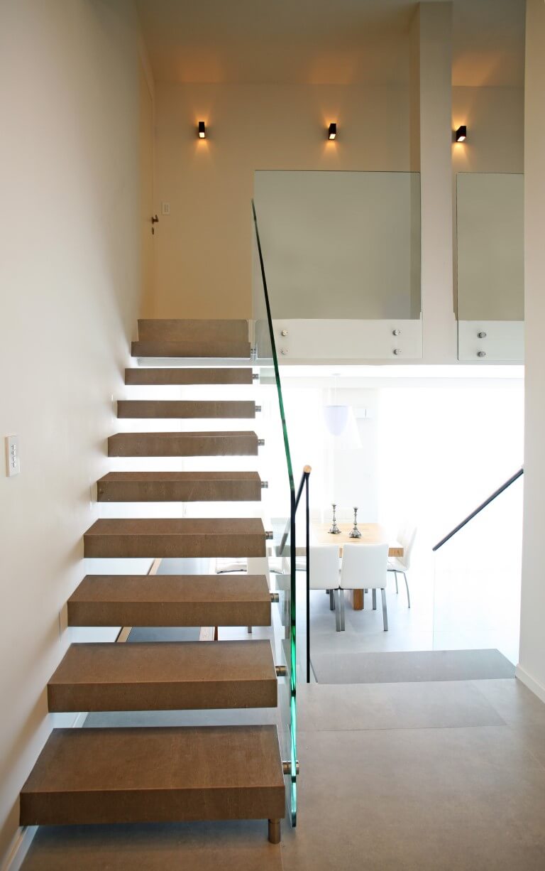 מדרגות מרחפות משיש בוילה. עיצוב מודרני ונקי