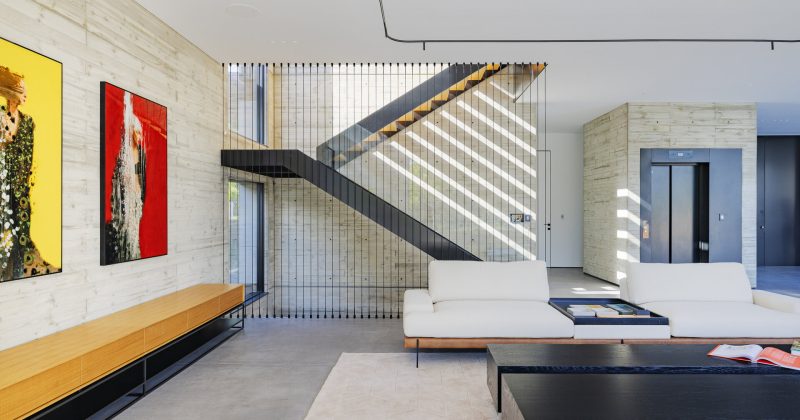 השימוש בזכוכית פופולארי מאוד גם במדרגות קלות שיכולות להתחיל ממרכז הסלון ולהוביל בספירלה אל